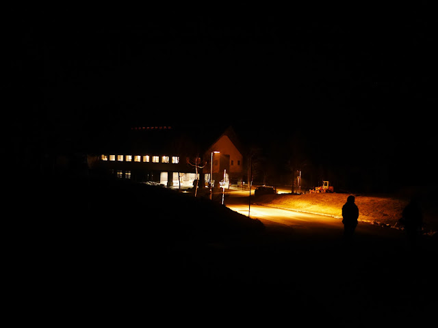 從門口走出來可以感覺氣溫明顯降低了,呵著空氣,搓著手往斜坡上慢慢爬上去。走上停車場後感覺差不多了便把燈關掉。